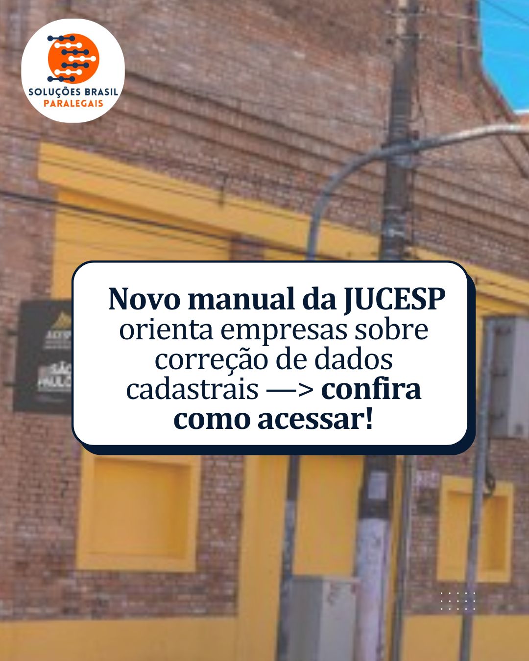 A Junta Comercial do Estado de São Paulo (JUCESP) lançou um Manual de Correção de Dados Cadastrais, voltado para empresários,